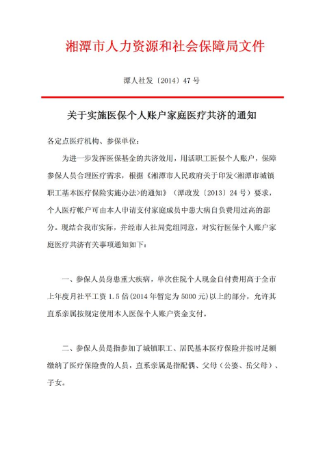 關于實施醫(yī)保個人賬戶家庭醫(yī)療共濟的通知